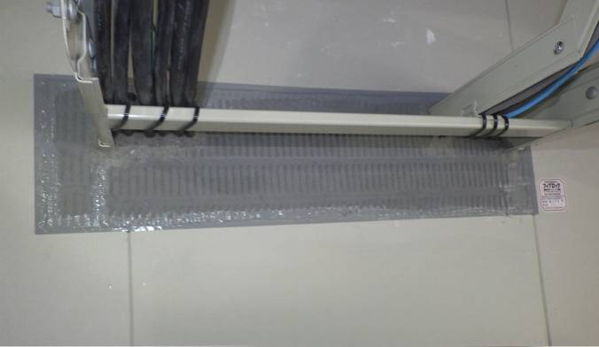 現在広く採用されている防火処理工法のひとつに、ケーブルの形状に合わせて加工したケイカル板を取り付け、耐火シーリング材ですき間をしっかりと封じる方法があります。